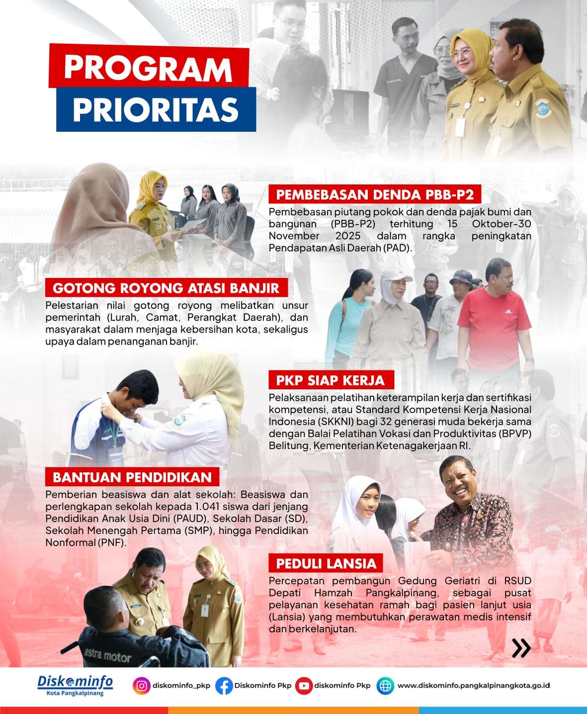 Selain penguatan internal, Wali Kota dan Wakil Wali Kota mulai menjalankan program-program berbasis lapangan yang menjadi program pioritas 100 hari kerja, dan program-program penunjang